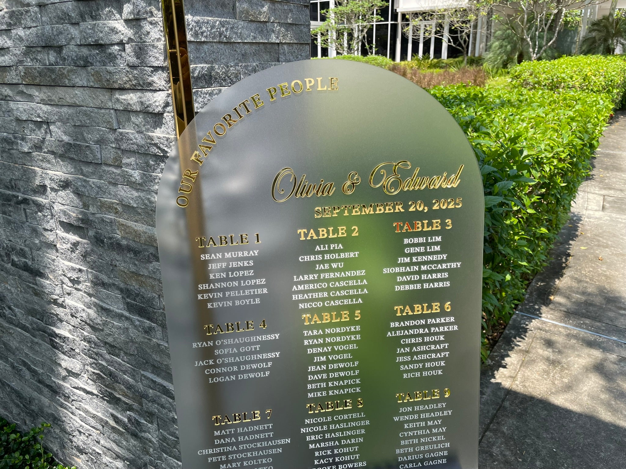 Guest list + table assignments (upload via message or email as a spreadsheet or Word file)